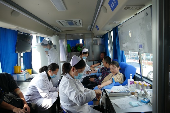£¨Í¼2£ºÓÐÐòÅÅ¶ÓÆÚ´ýÉϳµÏ×Ѫ£©
