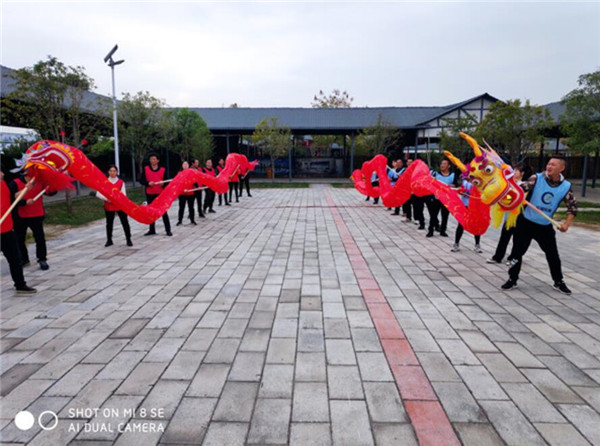 ͼ/ ¡°¹Ä¸ÐÈËÐÄ¡±Ô˶¯ÏÖ³¡ ×îºóÒ»¸öÏîÄ¿ÊÇ¡°ÁúÌÚÊ¢ÊÀ¡±¡£ËùÓÐÈËÆëÐÄÐÁ¦½«Áã¼þ×é×°³ÉÒ»Ìõ»îÁé»îÏÖµÄÁú£¬²¢ÔÚ½ÌÁ·µÄÖ¸µ¼ÏÂÍê³ÉÁúÌÚËĺ£¡¢ÅÌÁúÔÆº£¼°ÓÎÁúÏ·Ë®Èý¸öÐж¯¡£ÕâÊÇÒ»¸ö´óÐÍ´´×÷ÀàÏîÄ¿£¬È¤Î¶ÐÔºÍÍŶÓÏàÖúÐÔ¼«Ç¿¡£¸÷È˸÷˾ÆäÖ°£¬ÖÆ×÷Áú¹Ç¡¢»ÁúÁÛ¡¢Õ³ÁúÍ·Áú⣬²»µ½Ò»¿ÌÖÓµÄʱ¼ä£¬Á½ÌõÓÎÁú¾ÍÖÆ×÷Íê³É¡£ÔÚÎèÁú»·½Ú£¬¸÷ÈËרÐÄÌý¡¢ÓÃÐÄÎ裬Á½¶ÓµÄÎèÁúÐж¯¶¼»ñµÃÁ˽ÌÁ·µÄ¸ß¶ÈÔÞÑï¡£×îºó£¬ÔÚ½ÌÁ·¡°·çˮԽÀ´Ô½Ë³¡¢Éú»îÔ½À´Ô½ºÃ¡±µÄ×£¸£ÖнáÊøÁËÓä¿ì¶ø³ä·ÖµÄÍŽ¨ÍØÕ¹Ô˶¯¡£